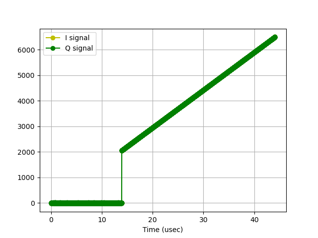 OK you've measured basically nothing and seen nothing. While not exactly a result that will win a Nobel Prize, it at least should hopefully check out. Is there anything out there that we could measure? If you added debug signals to your IQ framer, you can turn them on and see. I had the counter just get put on I and Q and got a time plot like this which is good (note depending on the FIFO size, there will be a build-up of the previous collection too...hence the silence followed by the jump to a ramp).